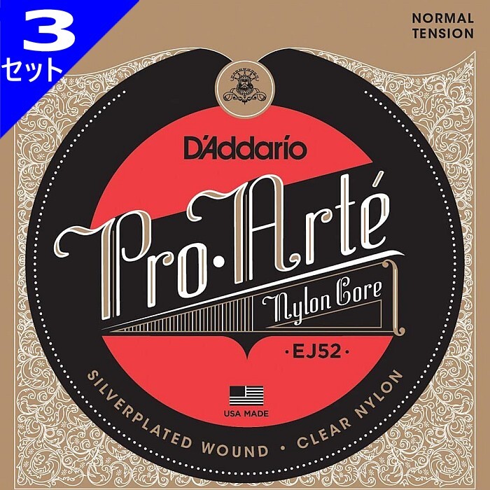 - 3セット D'Addario EJ52 Pro Arte Nylon Alto Guitar Silver/Clear Normal ダダリオ クラシック弦