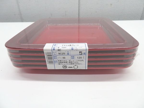 > G619◆未使用品メラミン◆角プレート5枚セット 24cm E191RC レッド・C 栃木 宇都宮 中古 業務用 厨房機器
