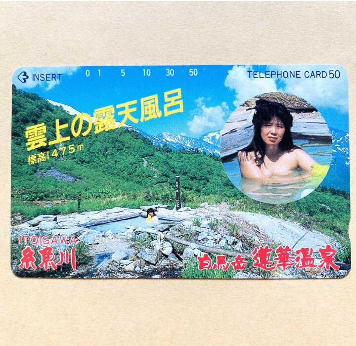 - 【未使用】 温泉テレカ 50度 白馬岳 蓮華温泉