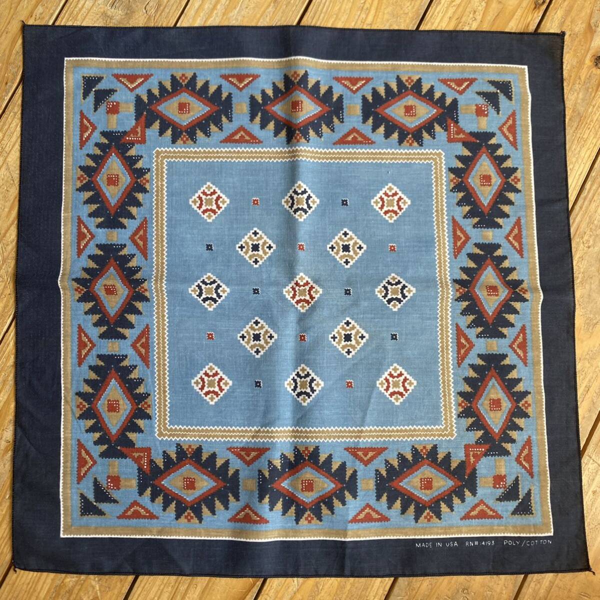- 送料無料 Vintage ネイティブ柄 ハンカチ バンダナ アメリカ仕入れ ネイビー 小物 お洒落 総柄 雑貨 ヴィンテージ A0886