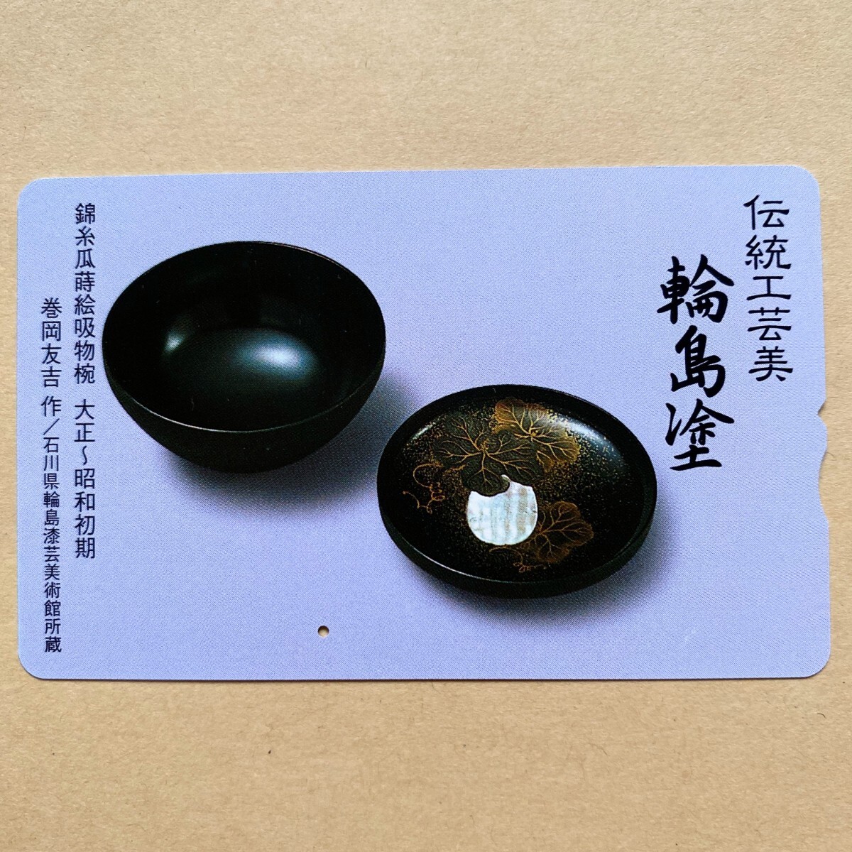 - 【使用済】 ふみカード 伝統工芸美 輪島塗 錦糸瓜蒔絵吸物椀 大正~昭和初期 巻岡友吉