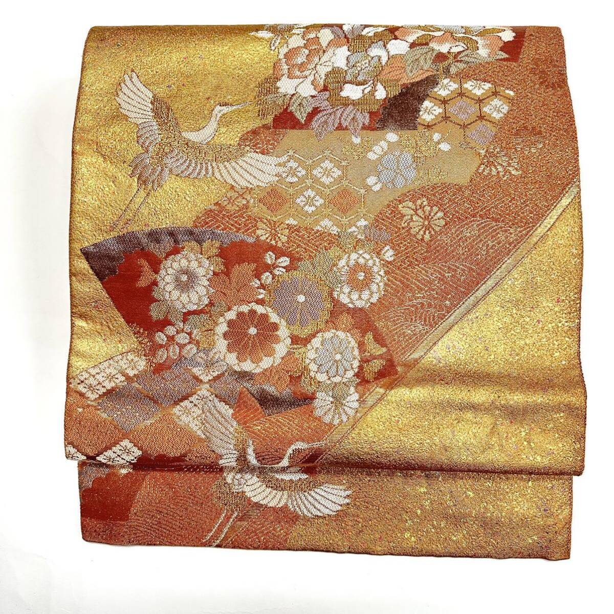 - 【七福】c64 正絹 袋帯 六通 太鼓柄 フォーマル 金糸 銀糸 豪華 古典柄 正倉院紋様 長さ 約440cm 留袖 訪問着 色無地 リメイク