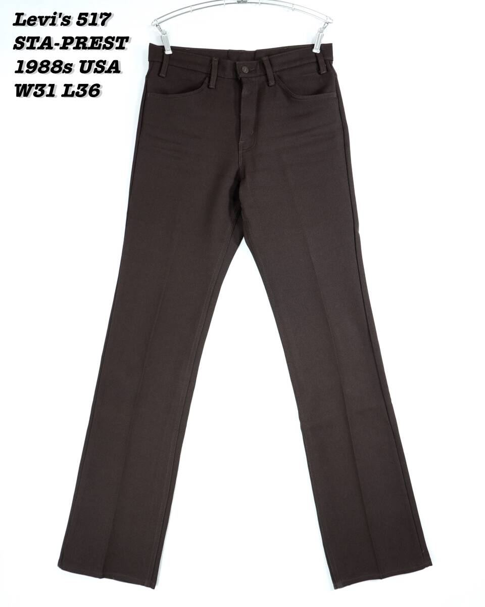 > Levi's 517 STA-PREST PANTS USA 1988s W31 L36 PA050 Vintage リーバイス ステイプレスト スタプレ アメリカ製 スラックス 1980年代