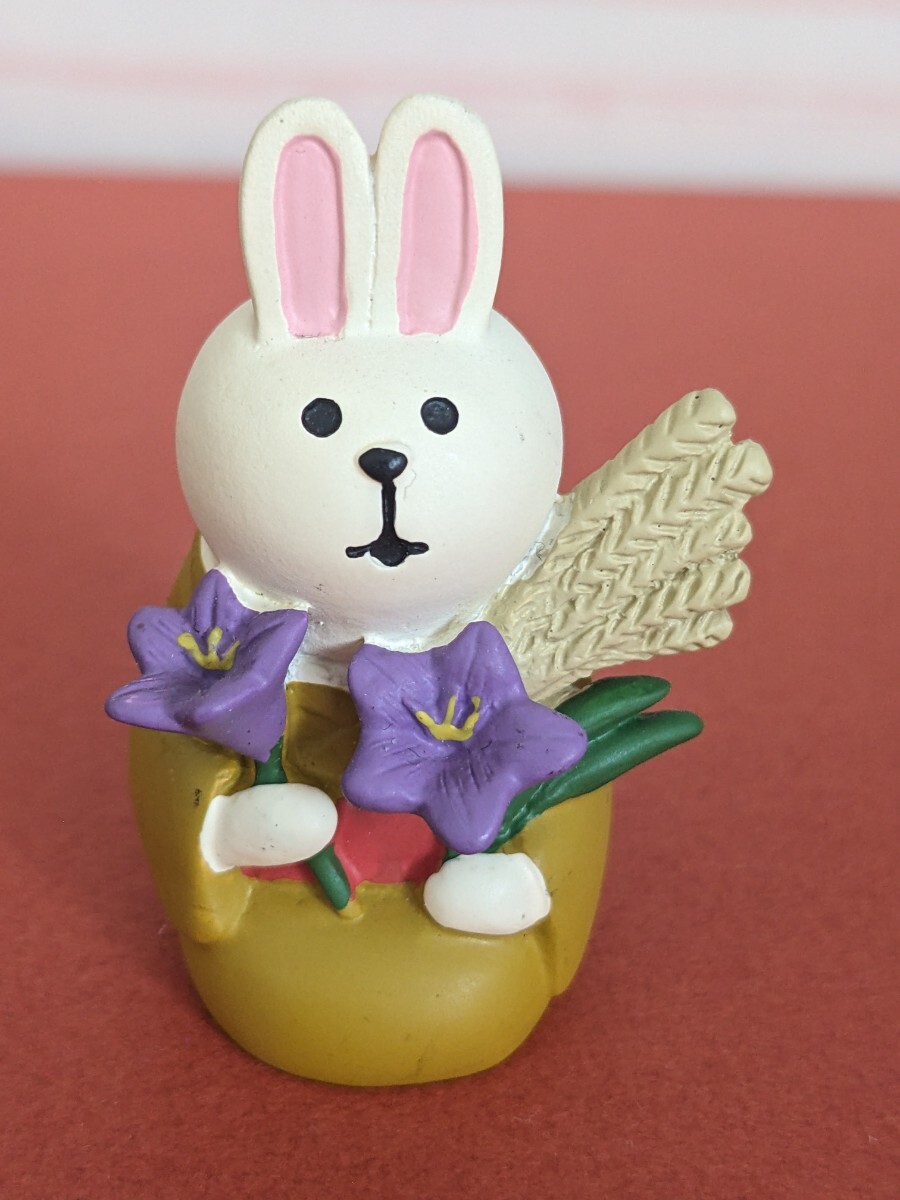 - 未使用 コンコンブル 生け花うさぎ お月見 秋 まったりマスコット デコレ concombre DECOLE フィギュア 置物