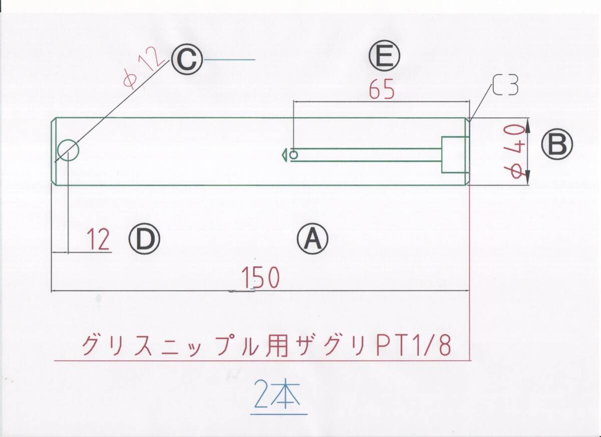 > NO1765 Φ40用 全長150mm グリス穴付きバケットピン 2本セット 重機 パワーショベル
