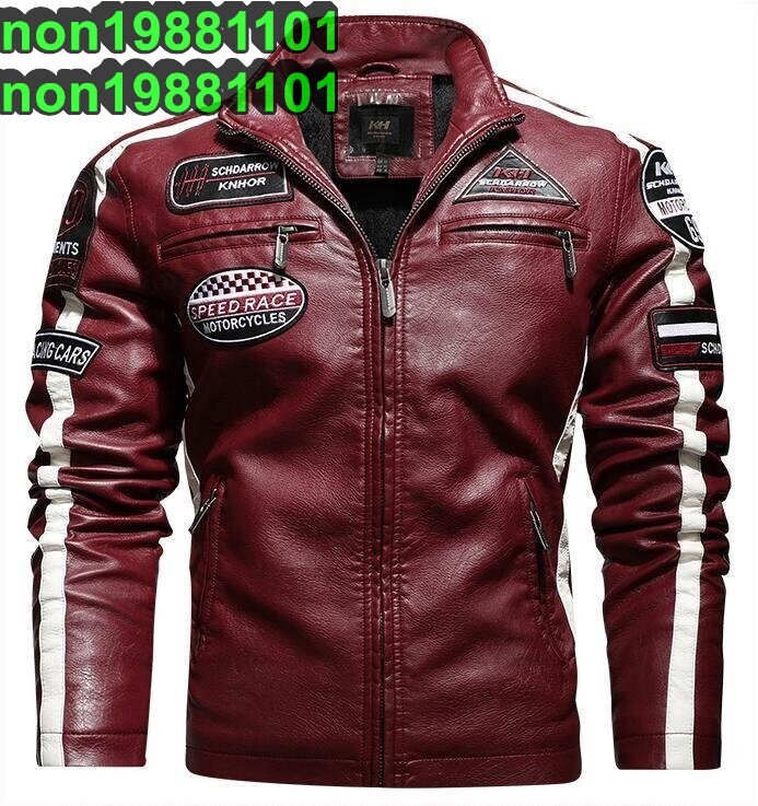 - 人気商品 秋冬新作 刺繍 厚手 裏起毛 メンズレザー ライダースジャケット バイクジャケット ジャンパー ブルゾン 革ジャン 3色L~3XL 赤