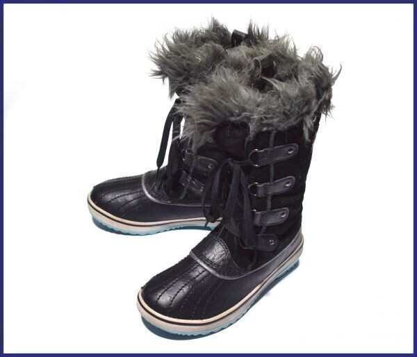 - カナダ名門★ソレルSOREL★ファー履き口/スエード革スノーブーツ21.0黒◆-o98