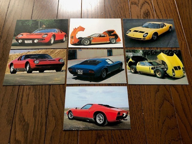 - ランボルギーニ・ミウラ P400SV スーパーカー カード 横14.95cm 縦9.85cm 昭和 当時物 計7枚 サーキットの狼 送料無料 底値