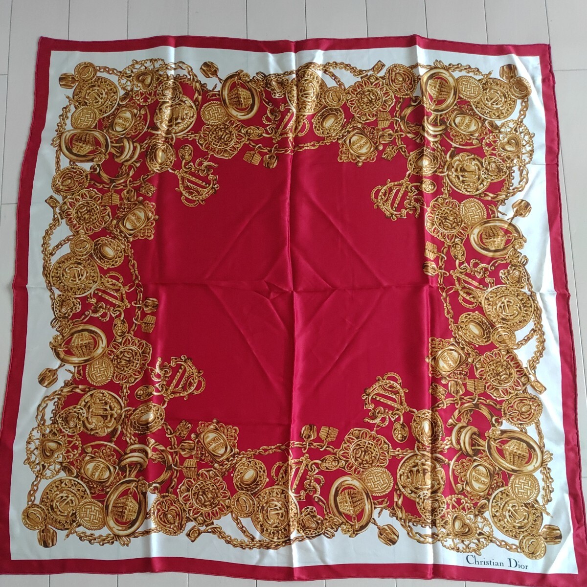 - ※未使用※クリスチャンディオール シルクスカーフ レッド