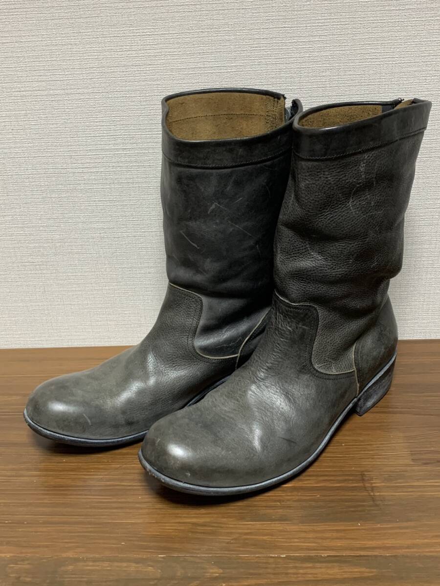 - [ATTACHMENT] バケッタレザー ロウ引き バックジップ レザーブーツ 41 牛革 アタッチメント