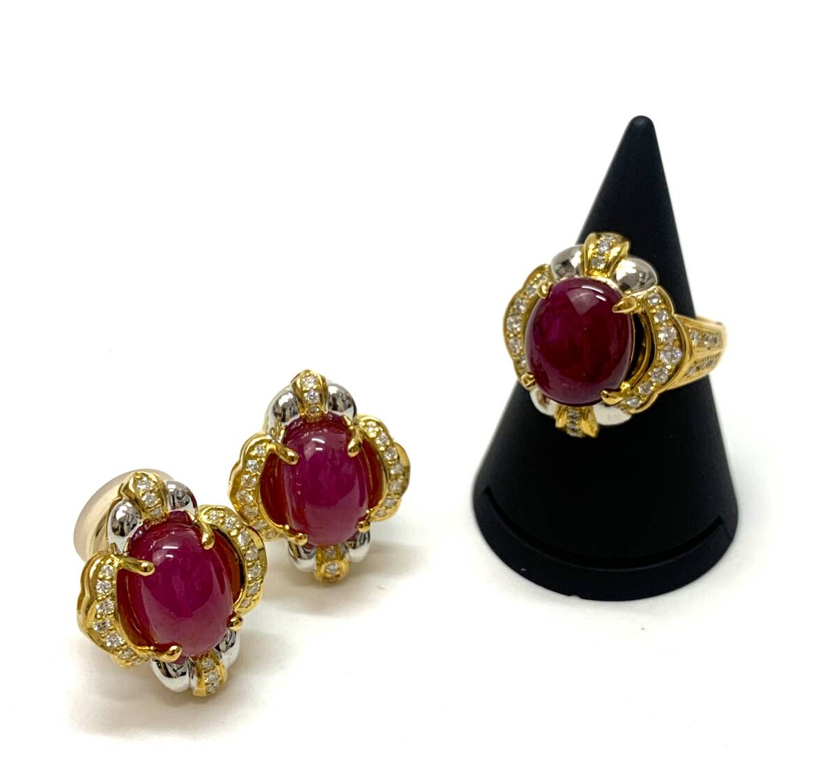 > 【送料無料】K18/K14 ゴールド・WG ダイアモンド・サファイア リング・イヤリング セット #10.5 指輪 総重量 20.9g 店舗受け取り可