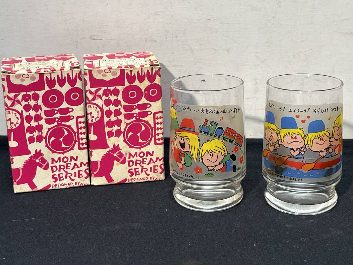 - 昭和レトロ ★モンアミ アムールコップ モンの世界民謡シリーズ イタリア/ロシア 2個セット 水森亜土 グラス アンティーク