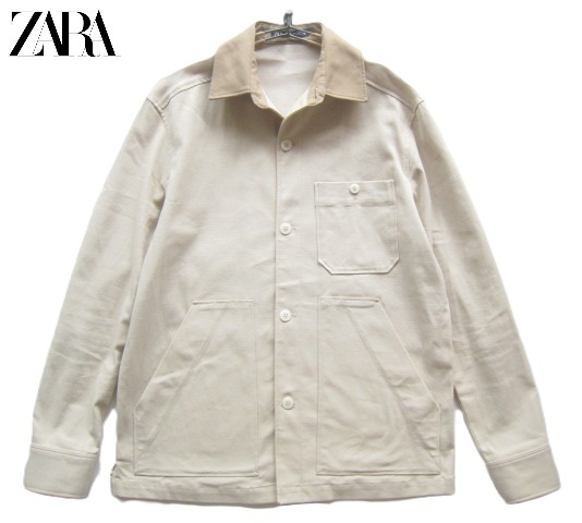 - 美品!!ザラ ZARA*カバーオール型 ストレッチコットンキャンバスワークジャケット M ベージュ