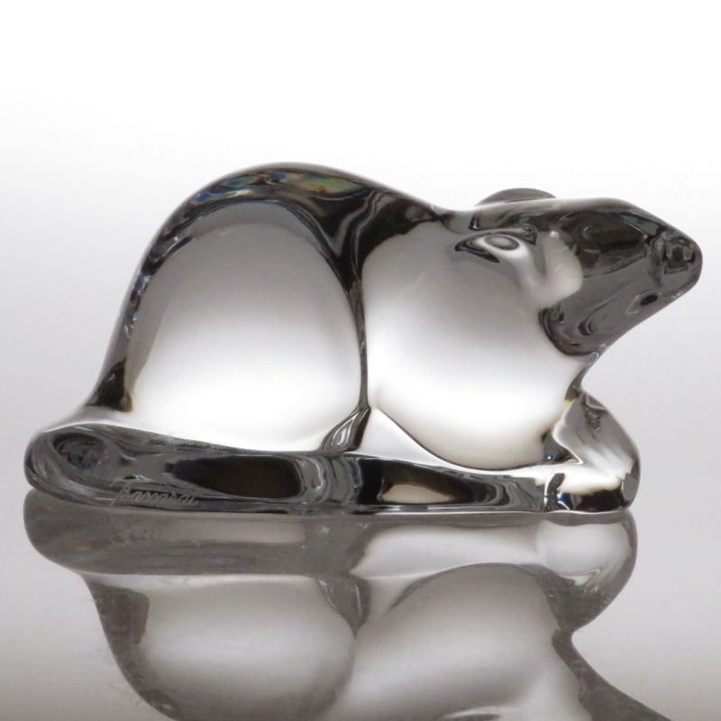 > バカラ フィギュリン ● 置物 ネズミ 伏せ オーナメント 十二支 子 クリスタル オブジェ 動物 フィギュア 干支