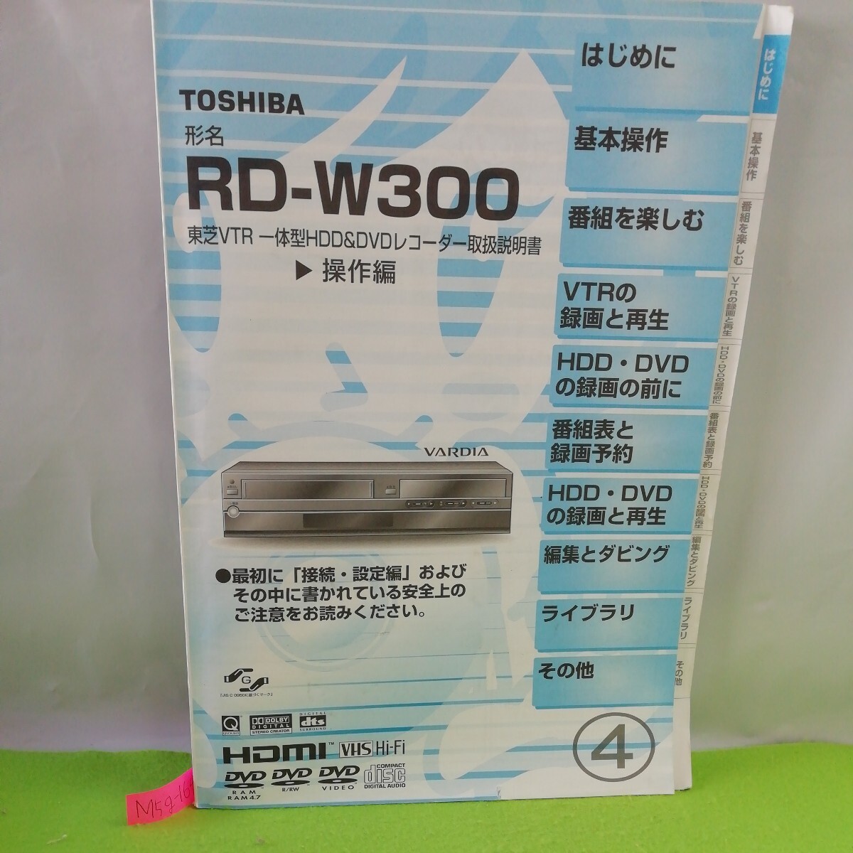 > M5g-164 RD-W300 東芝VTR 一体型HDD&DVDレコーダー取扱説明書 操作編 はじめに 基本操作 番組を楽しむ VTRの録画と再生 ライブラリ