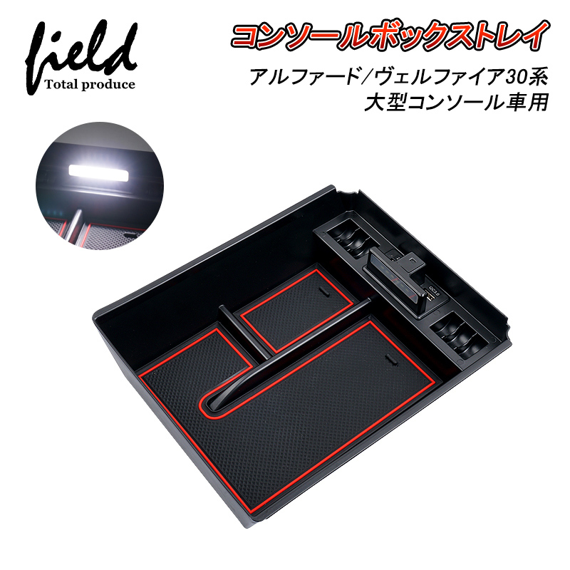 - 【FLD1693】アルファード/ヴェルファイア30系 QC3.0 USB充電 LEDセンサーライト コンソールボックス ABS素材 ラバーマット付き