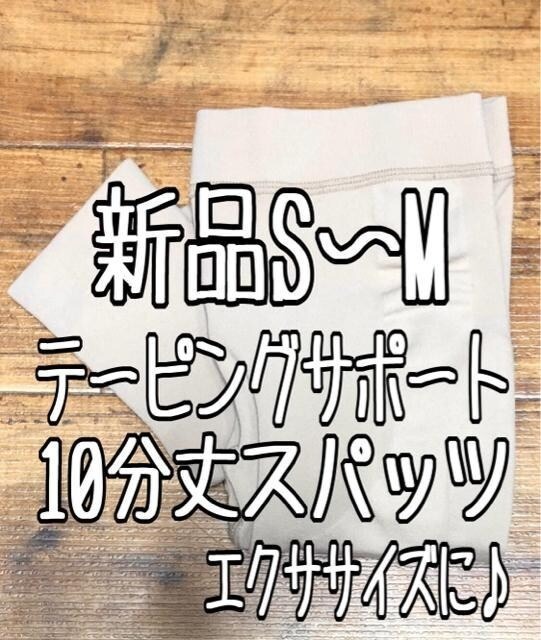- 新品☆S~Mベージュ系♪テーピングサポート♪10分丈スパッツ☆z456