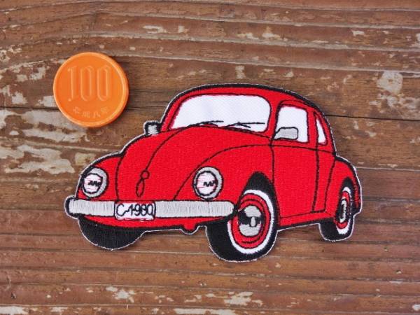 - 【送料無料】アイロンワッペン フォルクスワーゲン 赤色 ワーゲン ビートル VOLKSWAGEN アップリケ