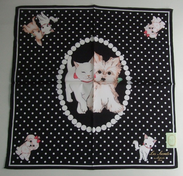 - LADUREE ラデュレ ハンカチ 未使用品 キャット ドック 水玉 ブラック系 百貨店 税込定価 1100円 日本製