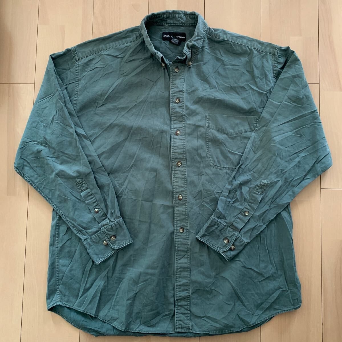 > 90s【Croft&barrow】クロフトアンドバローコットンホダンダウンシャツ ワーク 濃いオリーブ B.D shirt L 長袖シャツ US古着