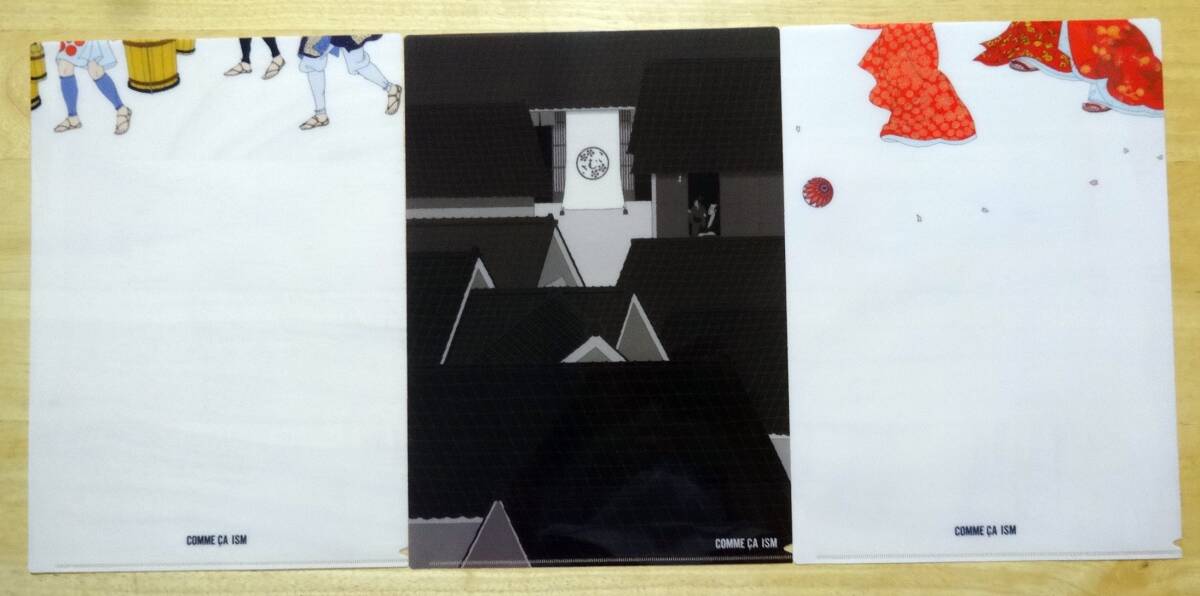 - COMME CA ISM★コムサイズム★クリアファイル3枚セット★和柄★着物★行商人★江戸の町風★未使用★非売品★ノベルティ★A4★レトロ