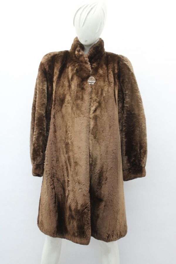 - ブラウン シェアード・ビーバー毛皮ファー・コート アメリカンサイズ6-8