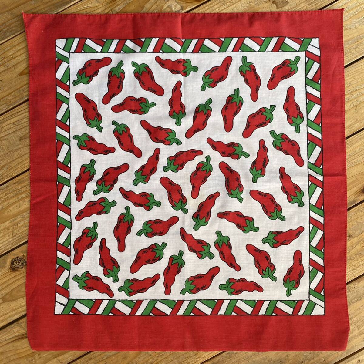 - 送料無料 Vintage バンダナ チリ柄 ハンカチ アメリカ仕入れ レッド HOT 赤唐辛子 辛い ソンブレロ お洒落 雑貨 ヴィンテージ A1075