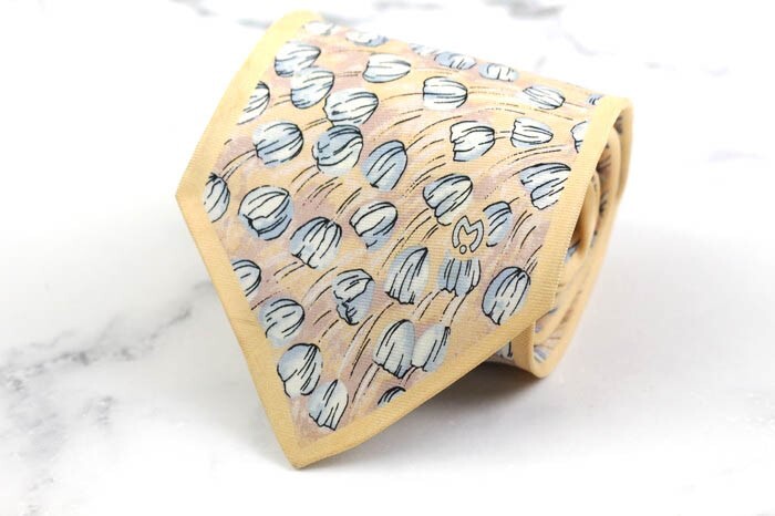 - ミラショーン シルク ロゴ 花柄 パネル柄 イタリア製 ブランド ネクタイ メンズ ベージュ mila schon