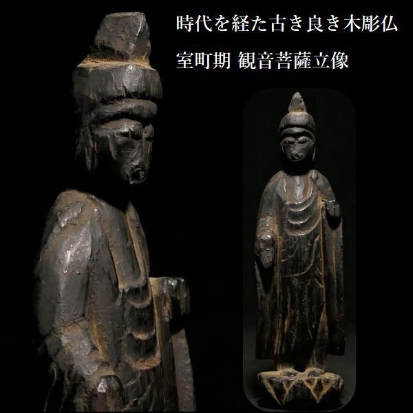 - 【 恵 #1139 】 時代を経た古き良き木彫仏 室町期 観音菩薩立像 観音様 菩薩 検:仏教美術/仏像/仏様/普賢菩薩/文殊菩薩