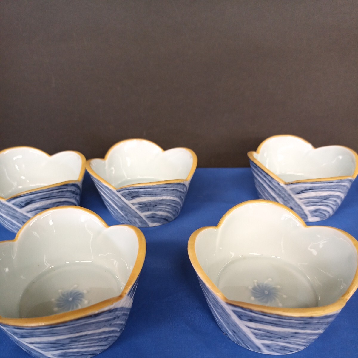 - 昭和レトロ■眉山窯 花型 小鉢 5個セット 和食器