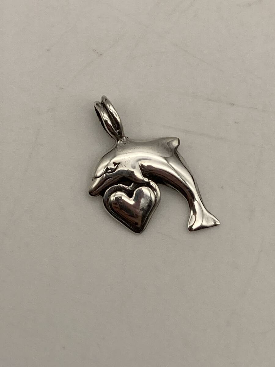 - 【2004】シルバーアクセサリー ペンダントトップ 925 イルカ ハート 139-2 *【560101000072】
