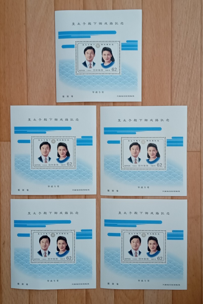 - 皇太子殿下 御成婚記念切手シート 5枚