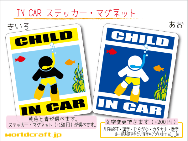 - ■CHILD IN CARステッカースノーケル・ダイビング! 1枚■子供KIDS かわいいシール 車に☆色選択 ステッカー/マグネット選択可能(4