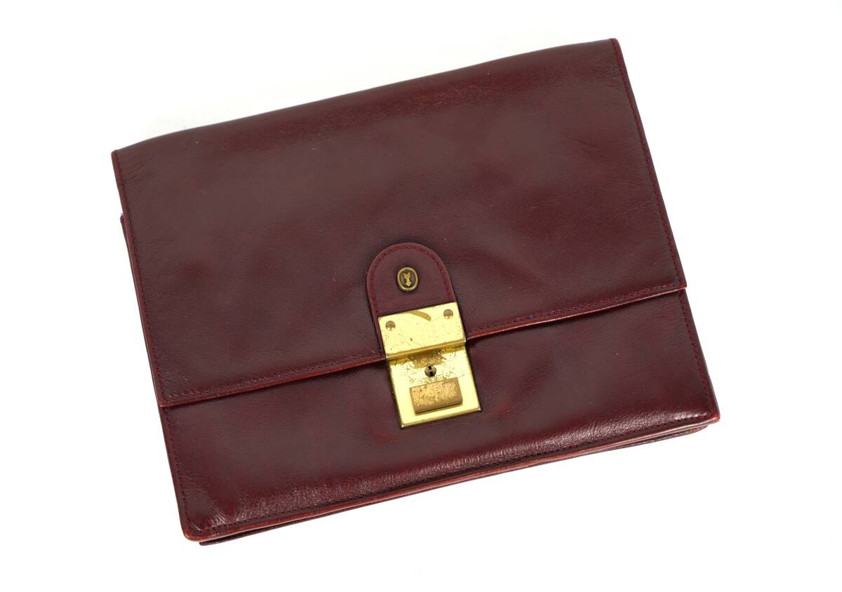 - ミニクラッチバッグ セカンドバッグ 本革 レザー バーガンディー ドイツ製 ペン差し有り