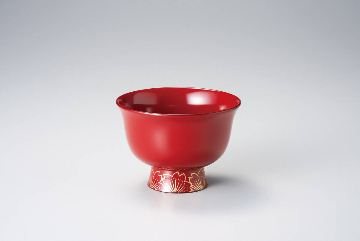 - 《只今!20%値下げ中》濱田屋「創作漆器」越前塗 桜 羽反り高台椀 朱 1客