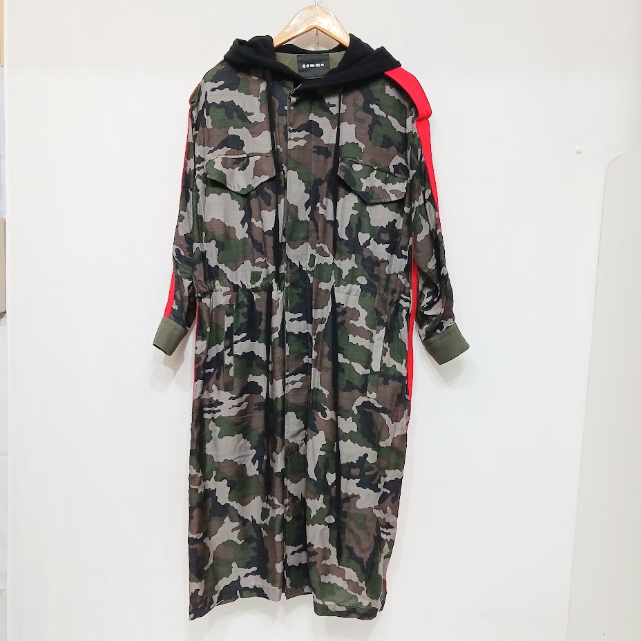 > gomme ゴム フード付き コート カモフラ 迷彩 GG-D28-451 サイズM ウール キュプラ 薄手 エポレット ミリタリー