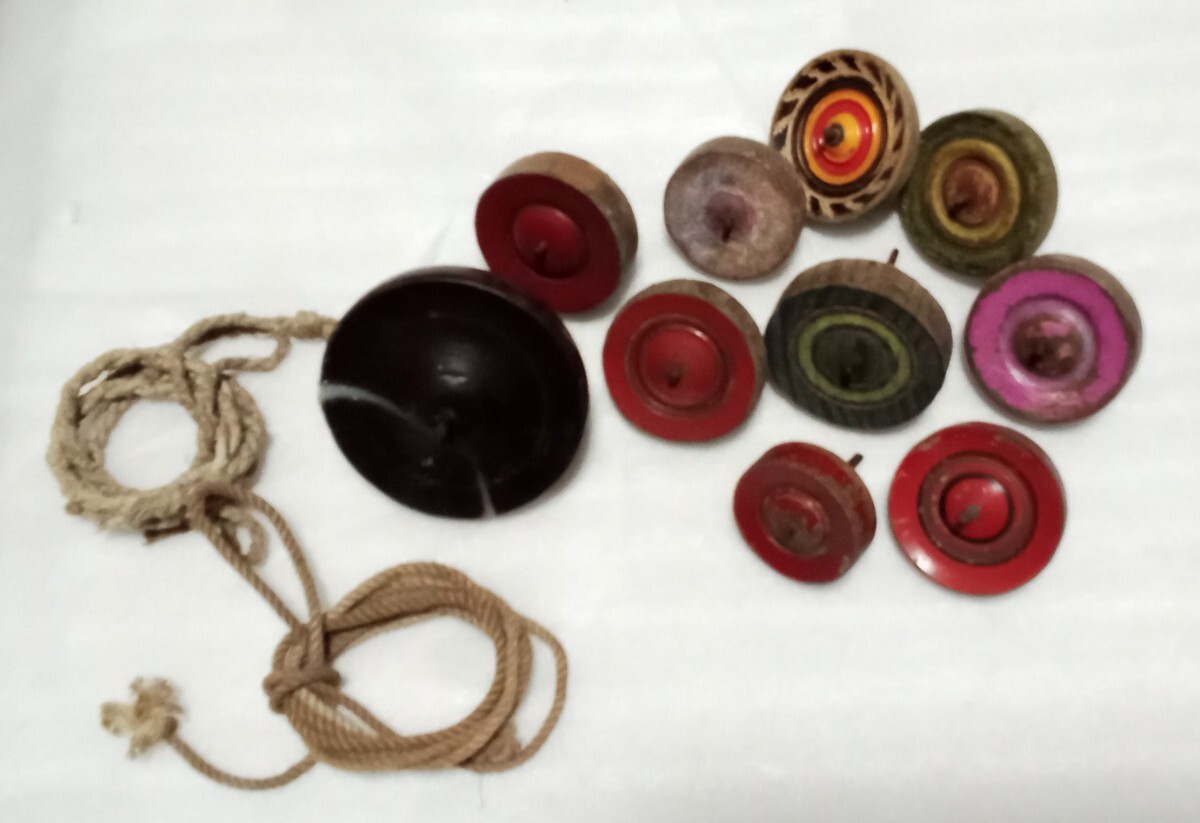 - ★ 蔵出し 古い昭和初期の子供の玩具 独楽10個+紐 遊具 飾り物