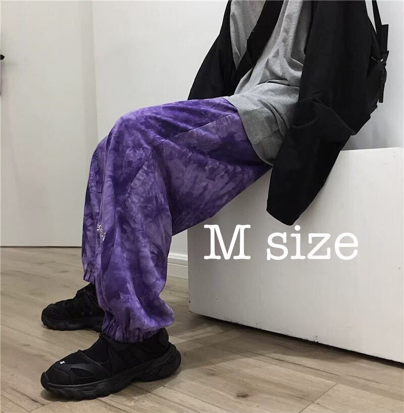 - ワイドパンツ タイダイ柄 スウェット イージーパンツ ユニセックス 男女兼用 パープル M