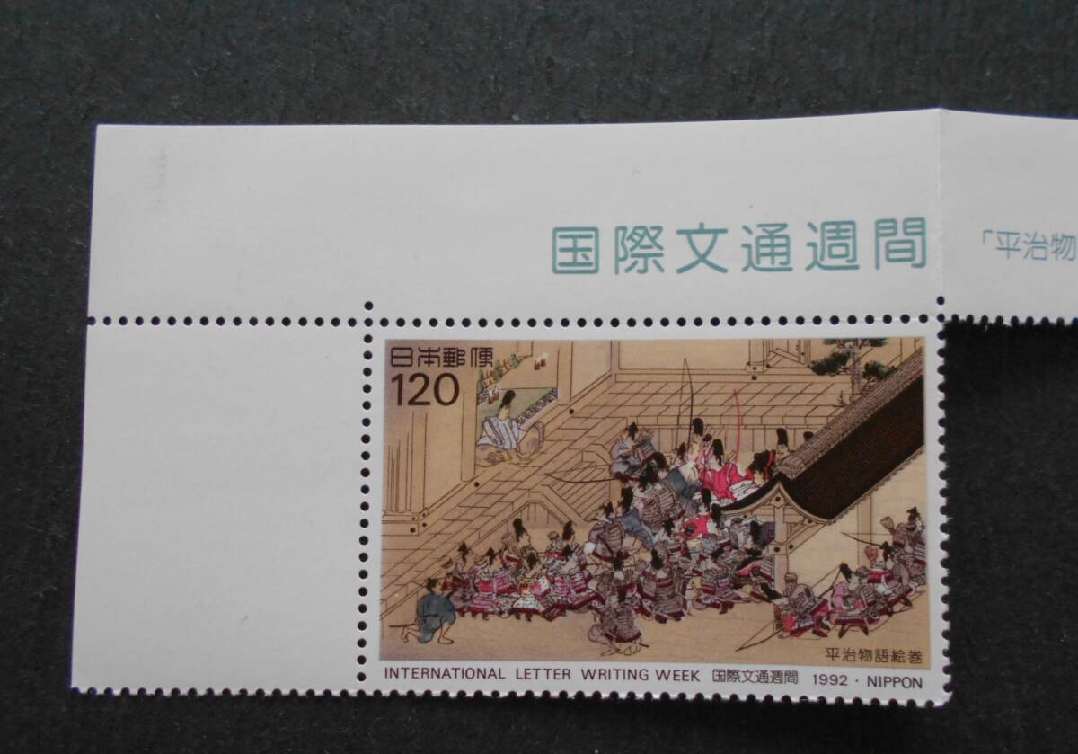 - 文通週間 1992 平治物語絵巻 未使用120円切手題字付き