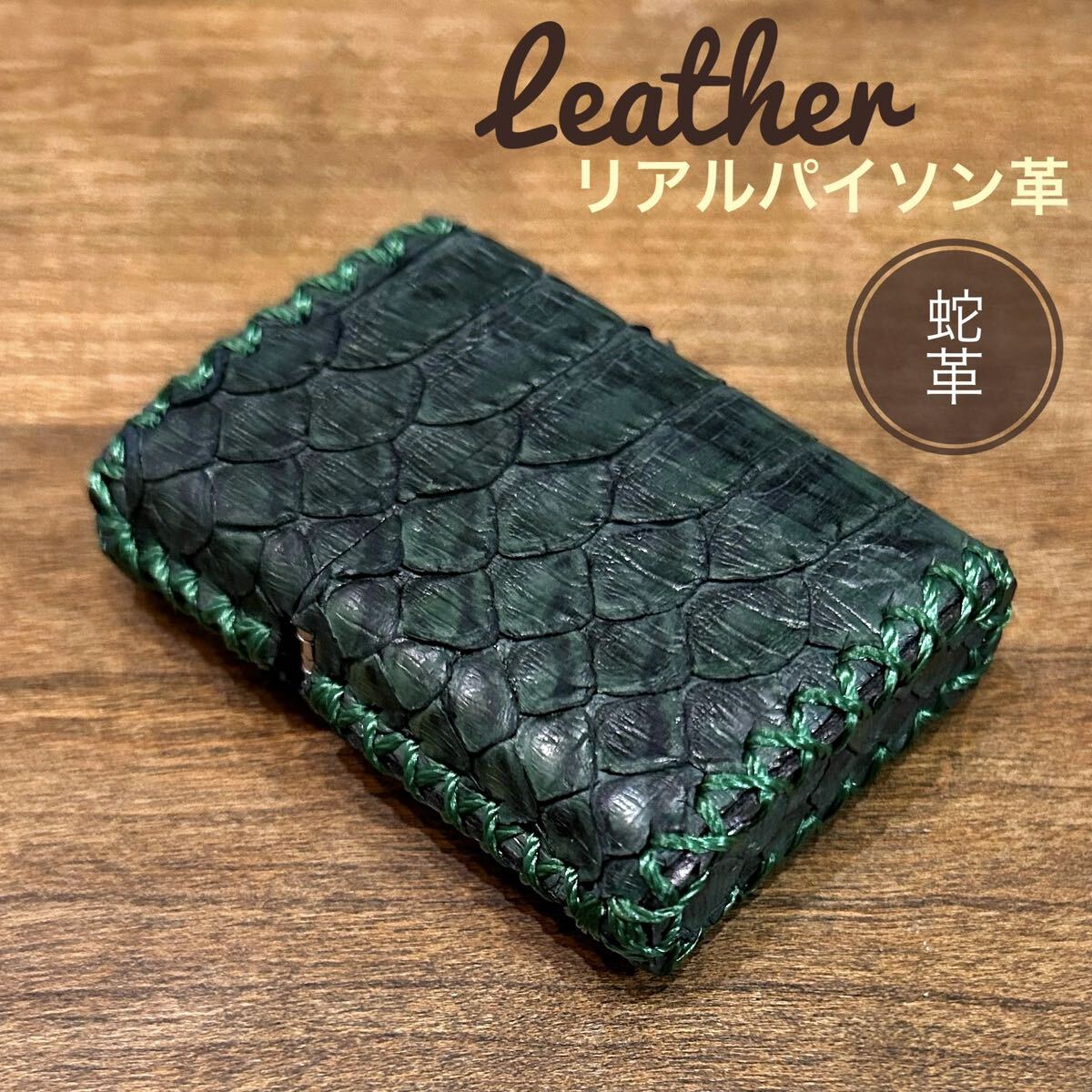 - [本革] zippo用 レザーカバー ケース 革巻き リアルパイソン ダークグリーン