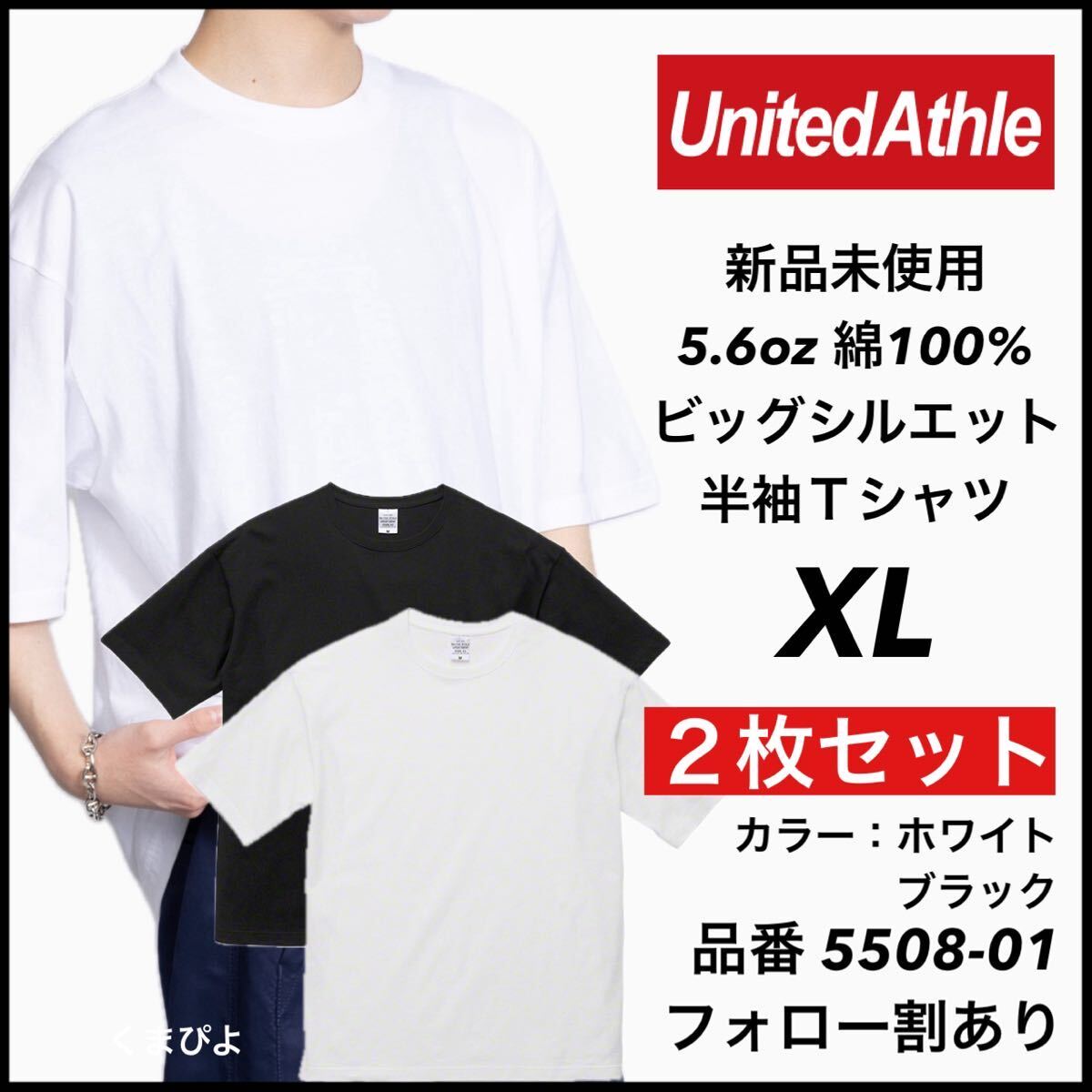 - 新品 ユナイテッドアスレ 5.6oz ビッグシルエット 半袖Tシャツ 白 黒 ホワイト ブラック XL サイズ 2枚セット United Athle