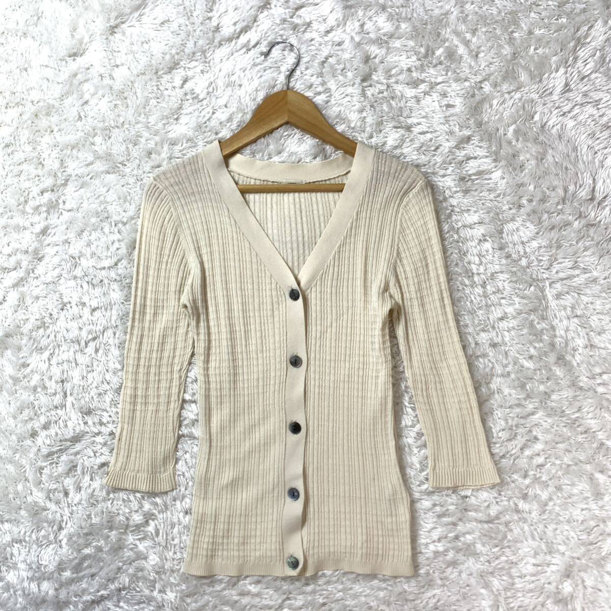 - 美品 IENA イエナ カーディガン アイボリー 七分袖 コットン 薄手 ストレッチ S相当 YA6945