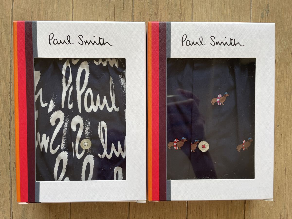 - 即決!ポールスミス!PAUL SMITH 布帛トランクス 2枚組 子犬柄&ロゴ柄ネイビー M
