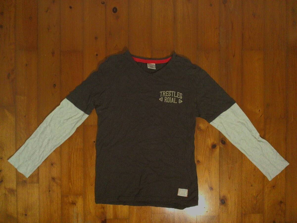 - ☆松☆ロイアル☆ROIAL☆レイヤード プリント長袖Tシャツ L グレー 黒灰
