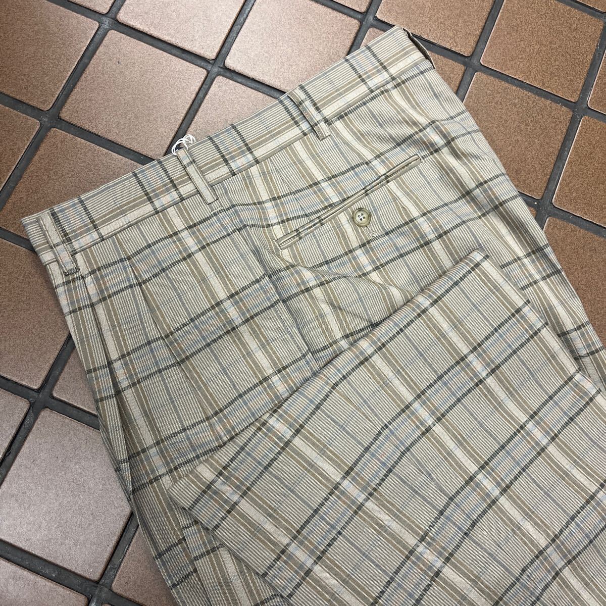 > 《新品☆ヴィンテージ》W85cm ゆったり系 スラックス カジュアルパンツ ゴルフウェア GOLFパンツ 2タック 薄手のサラサラ生地 ウール ポリ