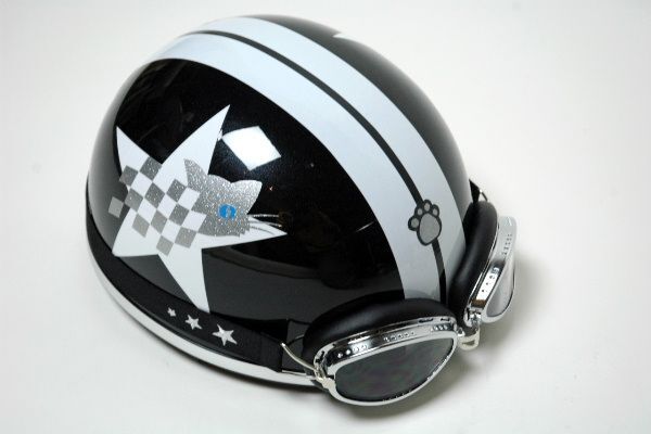 - 猫ちゃんデザインゴーグル付き半キャップヘルメット★ブラック星