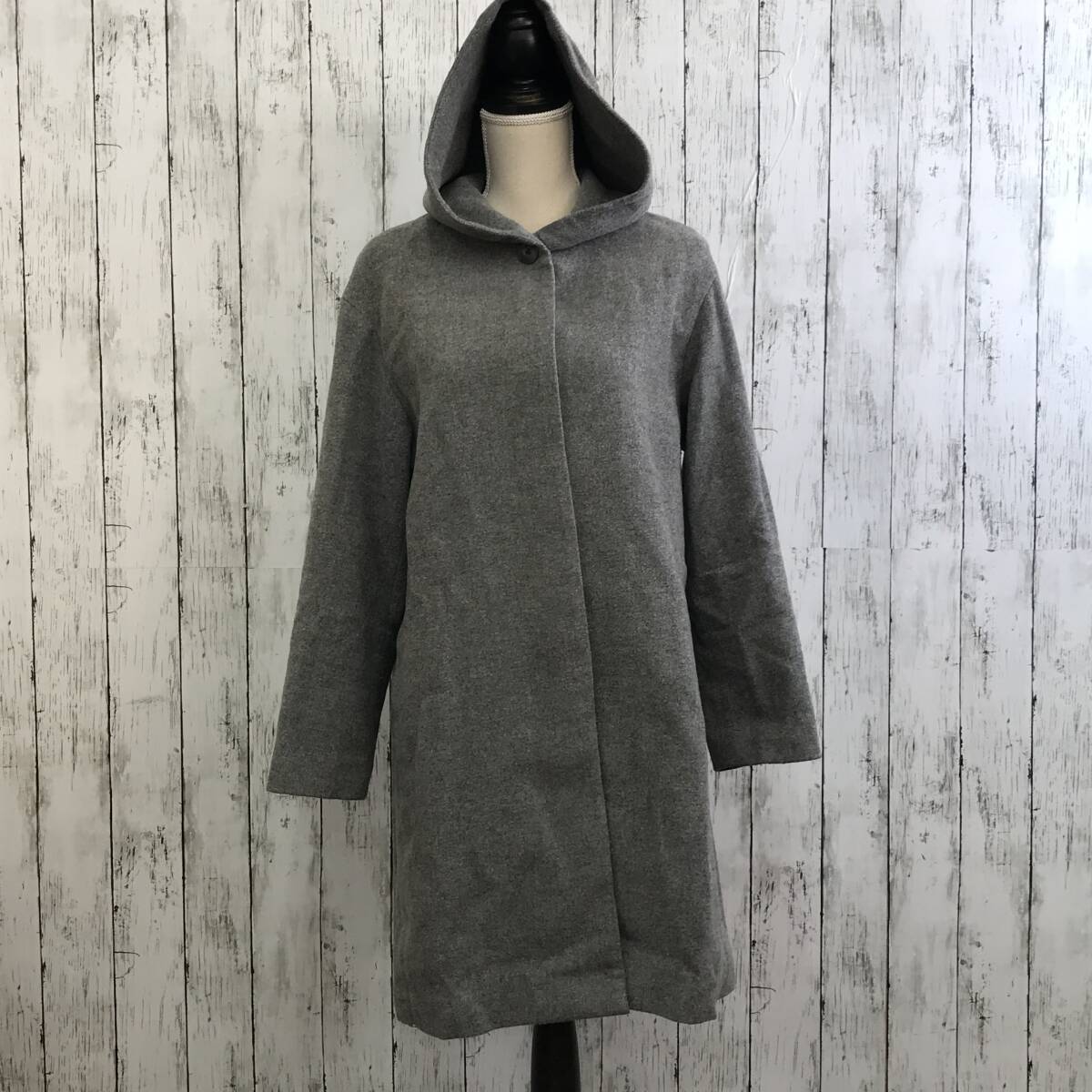 > UNIQLO ユニクロ ウールブレンドピッグシルエットフーデッドコート Mサイズ グレー T-491 USED