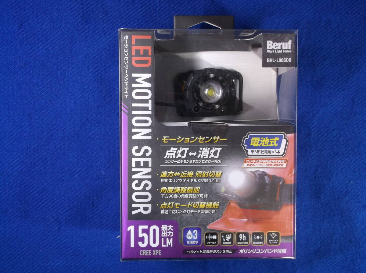 - 送料600円 【LED モーションセンサーヘッドライト BHL-L06SDB】ズーム+通常OnOff+手かざしOnOff+バックライト 釣りにも最適 検査済