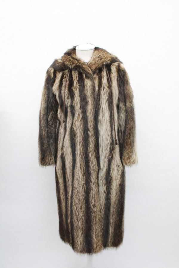- ラクーン毛皮ファー・コート アメリカンサイズ2-4 フードつき