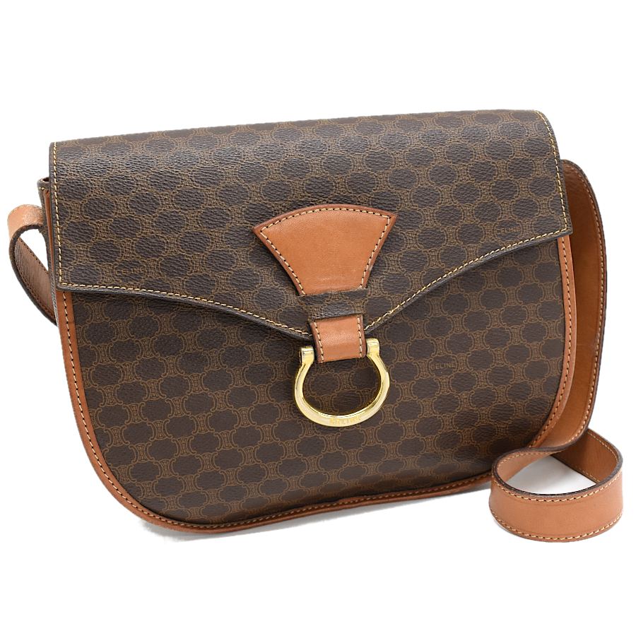 - セリーヌ ガンチーニ マカダム クロスボディ ショルダーバッグ JMB11 PVC レザー ブラウン CELINE